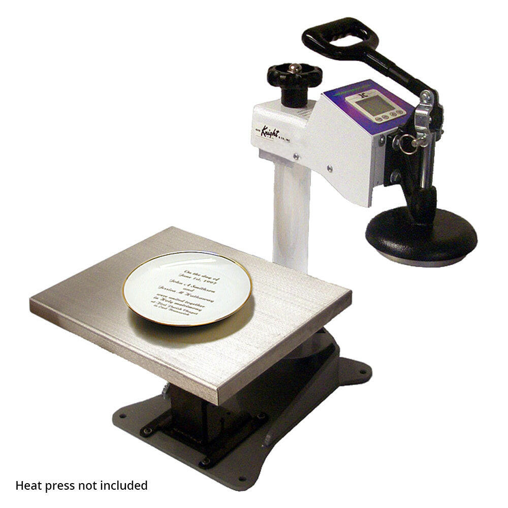 This is a plate attachment for the DC16 & DC16AP. The plate die platens feature quickly interchangeable components for allowing the circular heating element to press inside ceramic plates. Also included is a template tray and pad for centering the plate.