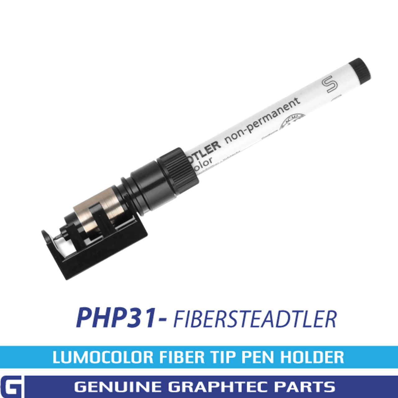 The NEW Graphtec Fiber tip pen holder for *STAEDTLER LUMOcolor Fiber pens gives you the versatility of a high quality, re-usable fiber tip pen holder—creating less waste and more savings in your production. The PHP31-FIBER allows you to adapt various colors of specialty permanents, non-permanents, and universal use pens from STAEDTLER.