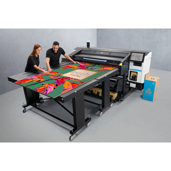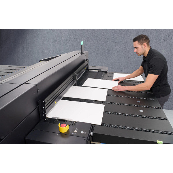 Profitable direct printing on rigid—and without tradeoffs—using the HP High Control Belt System. Compact hybrid printer that adapts to rigid and flexible applications—and uses single-phase power. Easy operations with an intuitive touchscreen, spindle-less printing, and fast, seamless transitions between rigid and flexible loading.